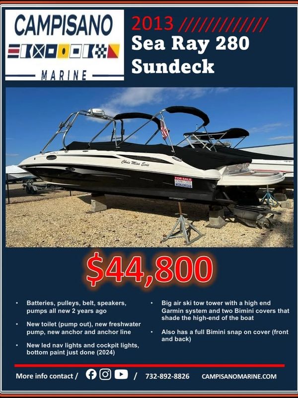 Currently out of the water. Storage paid in full for winter and $1000 deposit slip reservation at crystal point marina Pt Pleasant for 2025 summer season.